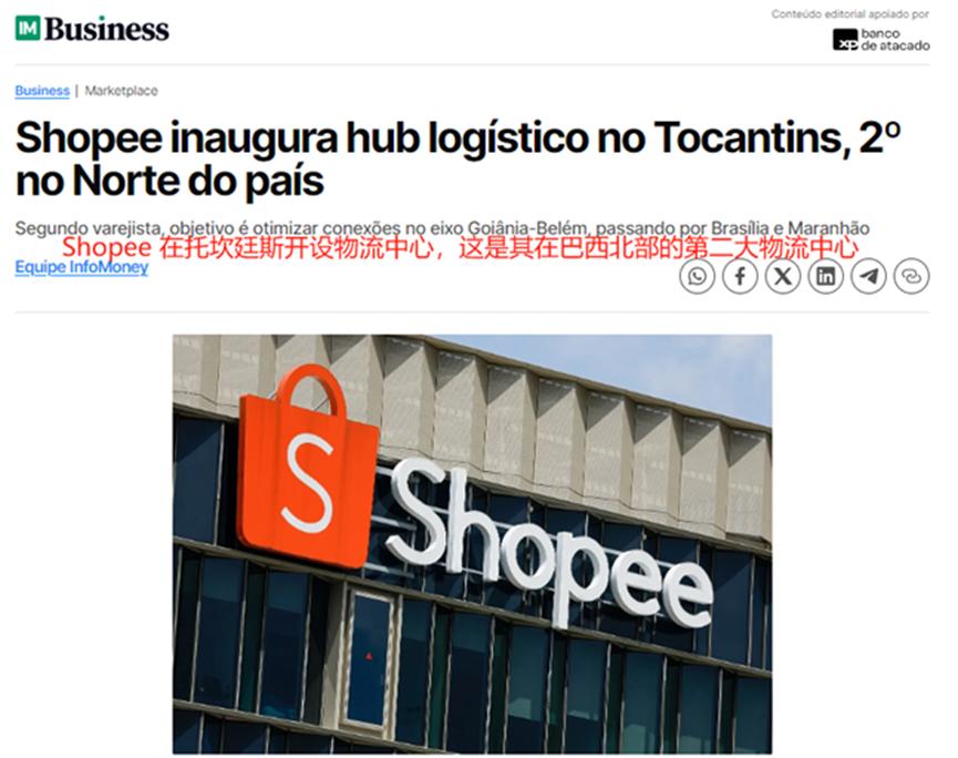 Shopee將在巴西北部開設(shè)新物流中心 圖源:Info Money