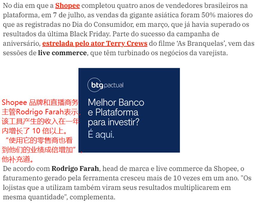 文章來源于互聯(lián)網(wǎng):直播帶貨收入暴漲十倍,Shopee成功拿下巴西市場