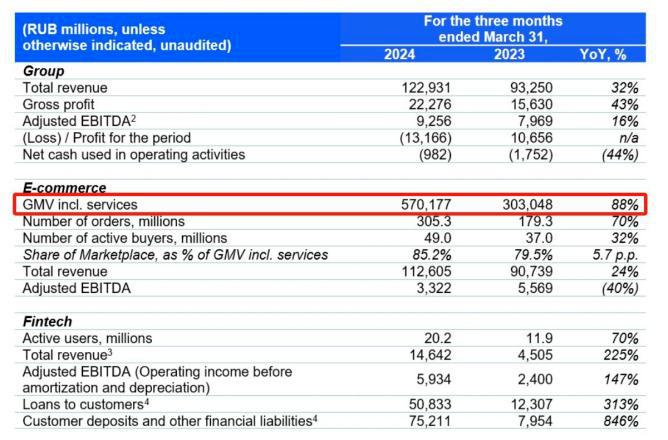 不得不說,Ozon的實力絕對不容小覷,它用一張又一張亮眼的業績成績單證明了自己的強大:在Ozon的2023年全年財務報告上,可以看到平臺全年GMV為1.75萬億盧布,同比增長了53%;在Ozon2024年Q1財務數據中,可以看到一季度平臺拿下了5702億盧布的營業額,實現了32%的漲幅。