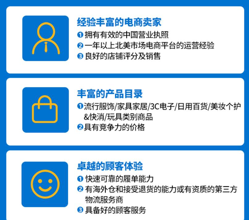 在過去,沃爾瑪的入駐標準一直較為嚴格,許多中國賣家望而卻步。但如今,沃爾瑪為了吸引更多賣家入駐,已經大幅放寬了入駐條件。中國賣家只需具備有效的中國營業執照、一年以上北美市場平臺運營經驗、良好的店鋪評分及銷售業績等條件,即可申請入駐。此外,沃爾瑪還取消了此前對銷售額的硬性要求,讓更多賣家有機會進入沃爾瑪平臺。