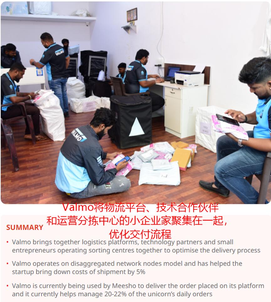 除了爭取融資,Meesho今年以來也在大力加碼物流建設。今年2月,Meesho正式上線了一個新物流平臺“Valmo”。該物流平臺的運營范圍覆蓋了印度20多個邦,不僅囊括了第一英里配送中心,也囊括了最后一英里配送中心,能為當地小微賣家提供更高效的物流配送服務。數據顯示,這一平臺日均能處理超過90萬件包裹,且2月時就已經有了3000名小微賣家入駐。