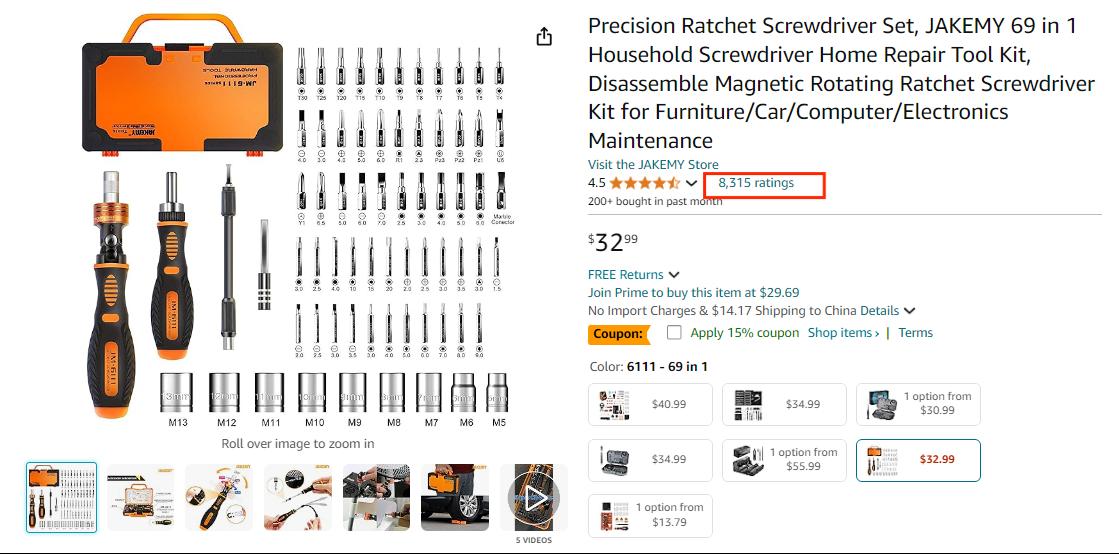 Jakemy螺絲刀套裝收獲8315條評價 圖源:Amazon