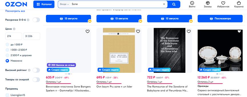 Ozon官網(wǎng)頁面 圖源:Ozon