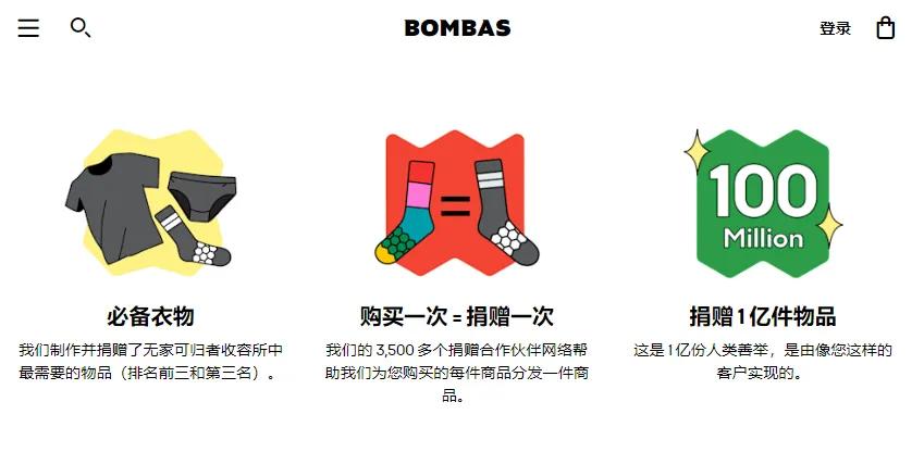 從品牌成立初期,Bombas便實行“買一件,捐一件”的購物模式,即消費者每購買一件產品,Bombas就會向無家可歸者捐出一件。這種慈善理念直擊低收入人群或社會弱勢群體的需求痛點,很能打動消費者的心,還與當下推崇的企業社會責任感不謀而合。