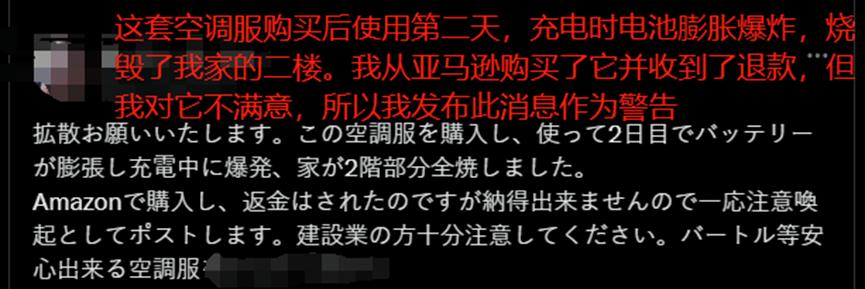 空調(diào)服購(gòu)買者者遭遇事故 圖源:X