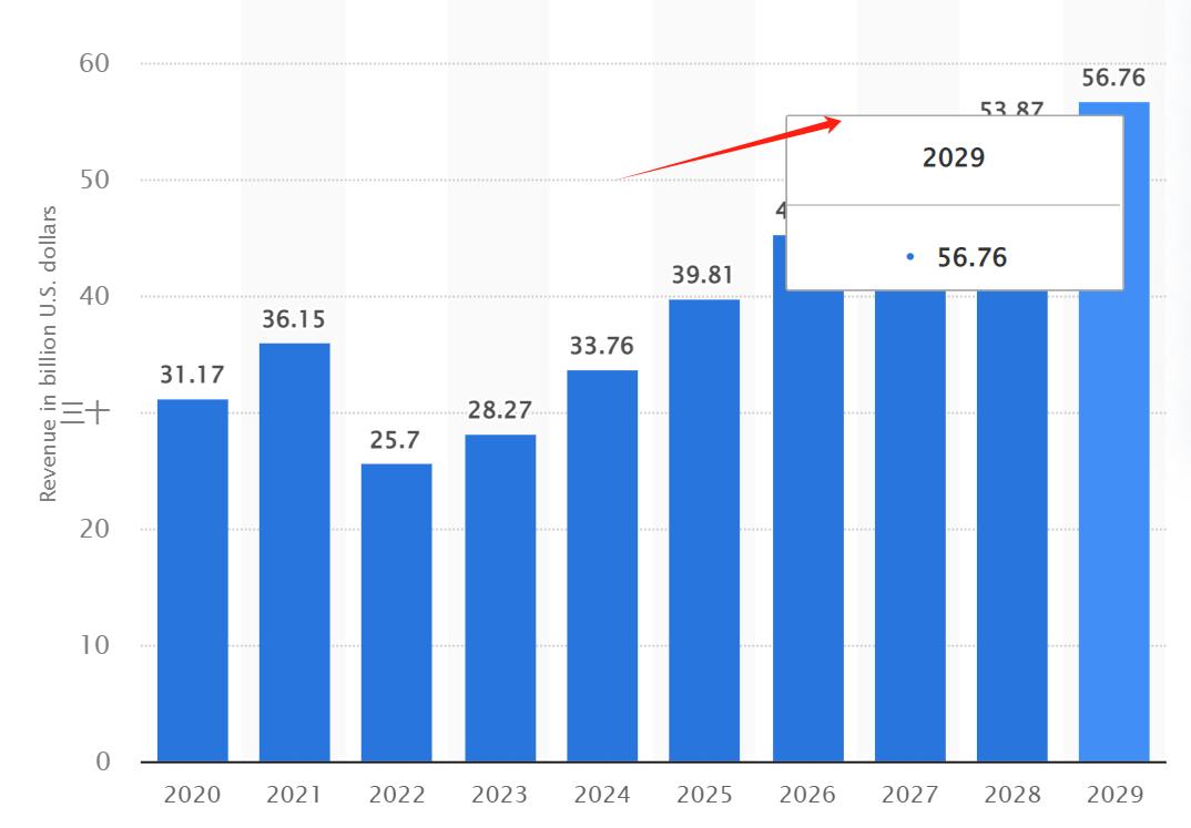 來自權威數據分析機構Statista發布的數據顯示,2024年,俄羅斯電子商務市場的收入預計能夠達到337.6億美元,未來幾年保持樂觀增長,在2029年這一數字或將飆升至567.6億美元。