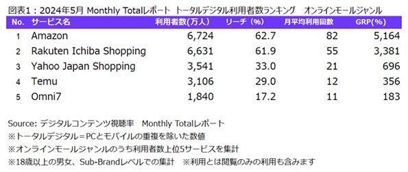Temu去年7月在日本正式上線,根據Nielsen的最新調查,今年5月,Temu日本市場的月度活躍用戶數量達到3106萬,在日本各大電商平臺中排名第四。5月日本電商平臺在線用戶總量統計排名為:亞馬遜(6724萬)、樂天(6631萬)、雅虎購物(3541萬)、Temu(3106萬)、Omni7(1840萬)。