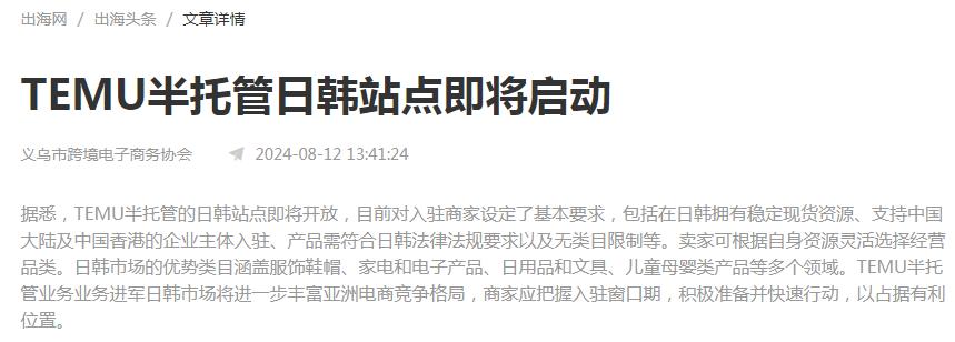 文章來源于互聯網:Temu半托管即將開通日韓站點