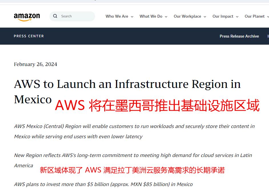 亞馬遜將在墨西哥新建數據中心 圖源:aboutamazon