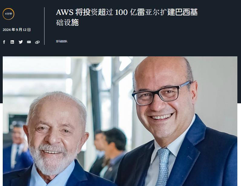 日前,亞馬遜旗下云業務Amazon Web Services(AWS)宣布計劃在未來十年內將在巴西投資101億雷亞爾(約合18億美元)。根據AWS的聲明,這筆資金將主要用于巴西新數據中心的擴展和建設工作。