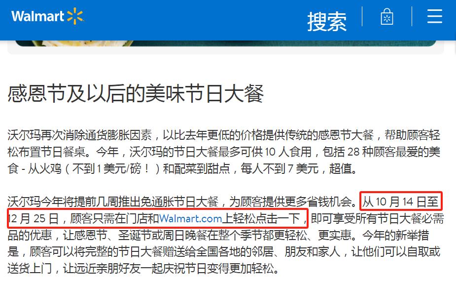 節(jié)日餐飲優(yōu)惠 圖源:沃爾瑪官網(wǎng)