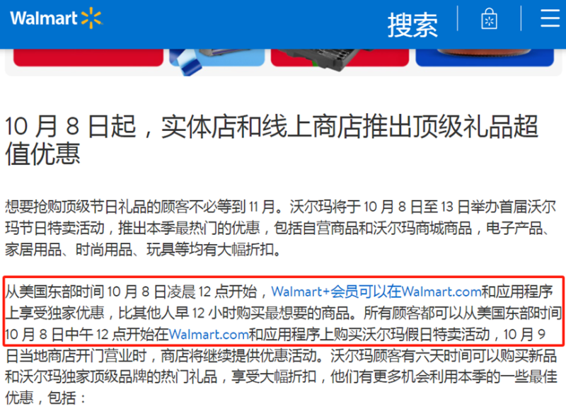 沃爾瑪推出節日特惠大促活動 圖源:沃爾瑪