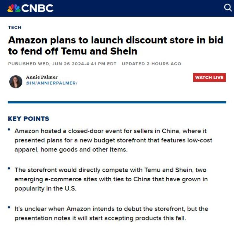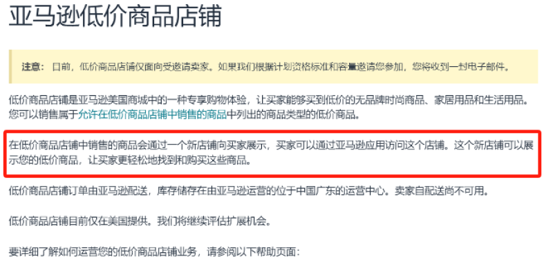 今年6月,亞馬遜在一場僅限中國賣家受邀參加的會議上宣布了該計劃。一份演示文稿顯示,亞馬遜低價商店主要面向時尚、家居、及生活用品類目招商,選品條件包括:低價、低重量安全品,售價在20美元以內,重量小于1磅,尺寸在14*8*5英寸范圍內。