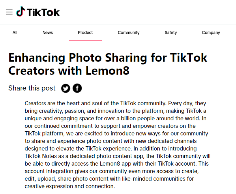 盡管TikTok最初因短視頻內容而知名,但自2022年以來,TikTok引入了新的照片內容格式,首先是照片帖子,它允許創(chuàng)作者分享多幻燈片照片輪播。今年早些時候,TikTok開始在特定市場測試TikTok Notes,這是一款照片共享應用。通過這些體驗、測試和集成,TikTok旨在幫助創(chuàng)作者以有趣、動態(tài)和引人入勝的方式分享他們的照片內容。