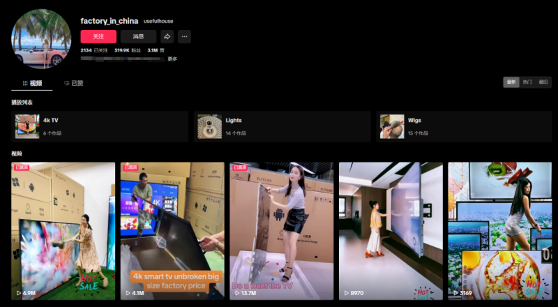 近期,江西贛州的一家智能電視工廠在TikTok上大放異彩,其賬號@factory_in_china不僅粉絲數突破50萬大關,更有單條視頻播放量突破千萬次的佳績,成為跨境電商領域的一匹黑馬。
