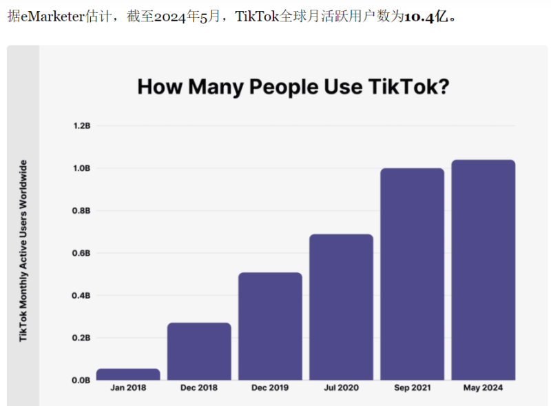TikTok全球月活躍用戶數超10億 圖源:backlinko