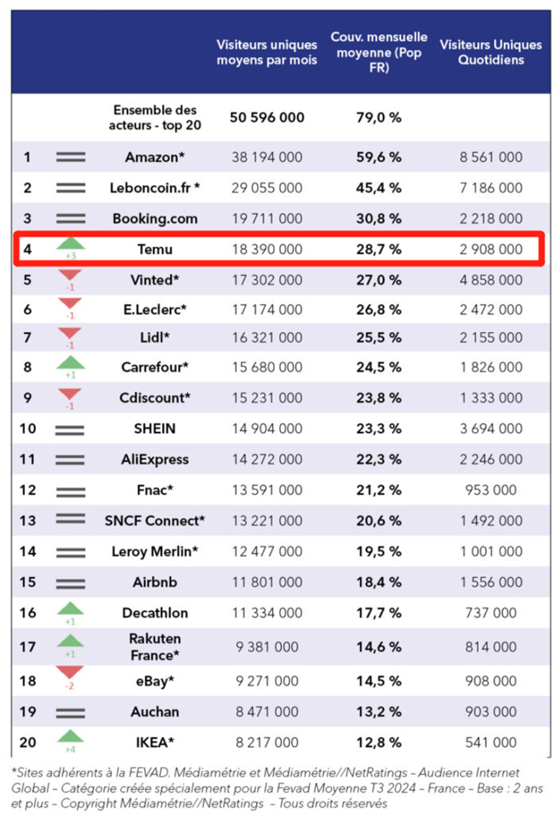 Temu成法國第四大電商平臺(tái) 圖源:Fevad