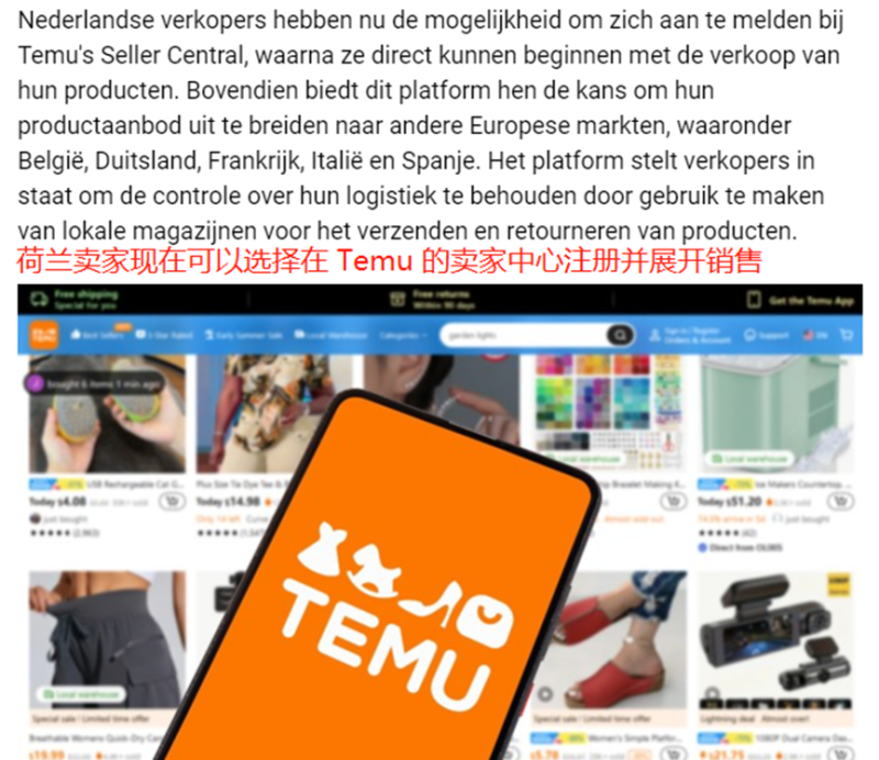 加快本土化進(jìn)程,Temu向荷蘭賣家開放入駐