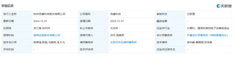 最近,杭州覓睿科技股份有限公司發布公告稱,公司擬公開發行股票并在北交所上市。在國信證券的輔導下,目前已通過中國證券監督管理委員會浙江監管局的輔導驗收。