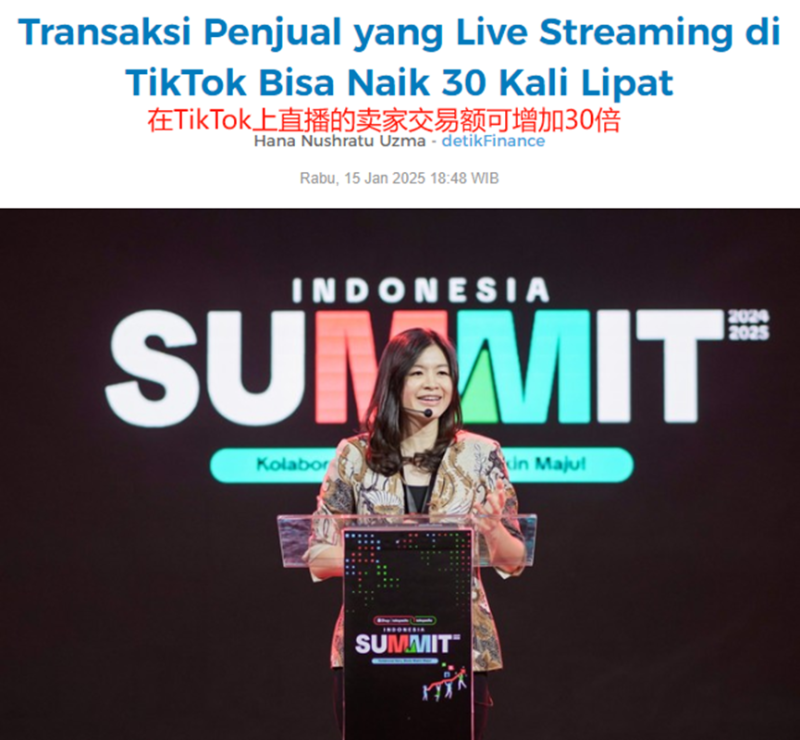 TikTok上直播的賣家交易額增加了30倍 圖源:detikfinance