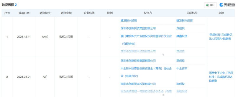 獲得兩輪融資 圖源:天眼查