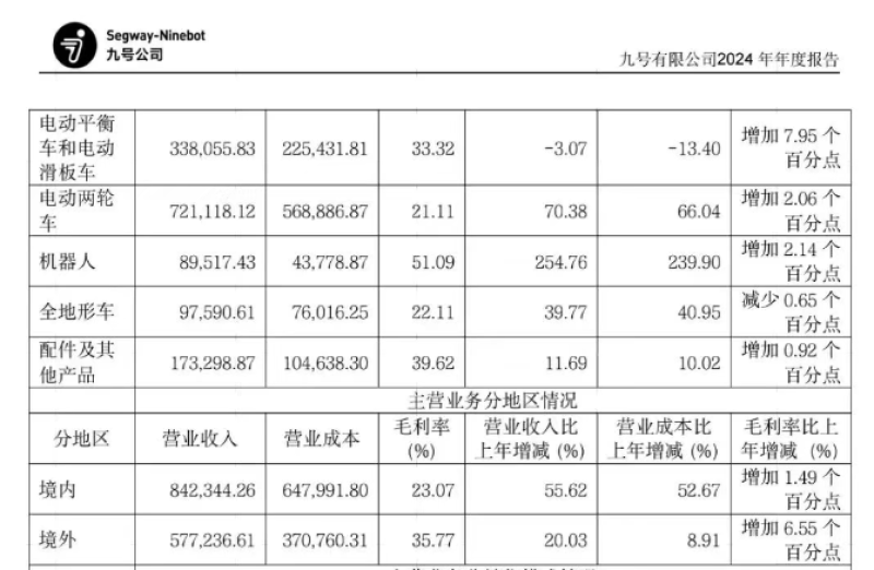 2024年業績大漲 圖源:九號公司