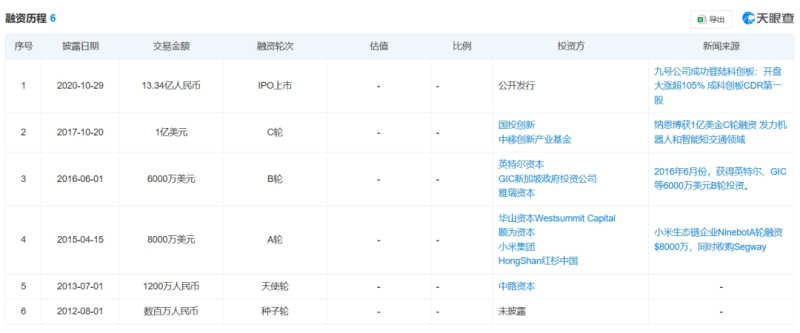 九號公司獲得小米注資?圖源:天眼查