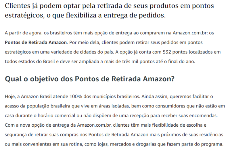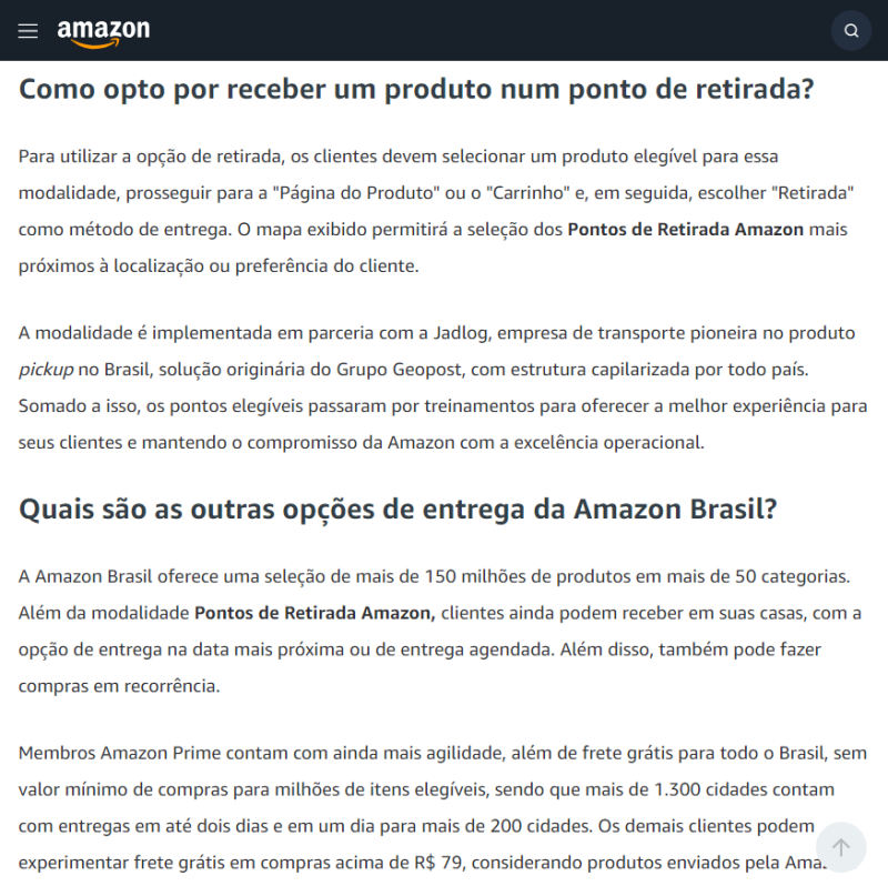 亞馬遜指出,新模式旨在改善偏遠地區、無家庭接收條件或工作時間無法在家的消費者購物體驗。該服務由亞馬遜與運輸公司Jadlog合作開展。Jadlog隸屬于Geopost集團,在巴西本地提貨解決方案領域擁有廣泛覆蓋和運營經驗。目前,所有合作點已完成相關培訓,以確保統一的服務質量標準。