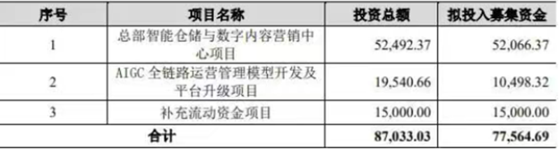 今年3月份,華凱易佰披露《向不特定對(duì)象發(fā)行可轉(zhuǎn)換公司債券預(yù)案》公告稱(chēng),計(jì)劃發(fā)行可轉(zhuǎn)債募資不超過(guò)7.76億元,主要用于總部智能倉(cāng)儲(chǔ)與數(shù)字內(nèi)容營(yíng)銷(xiāo)中心項(xiàng)目、AIGC全鏈路運(yùn)營(yíng)管理模型開(kāi)發(fā)及平臺(tái)升級(jí)項(xiàng)目等項(xiàng)目,大部分都和AI技術(shù)有關(guān)。