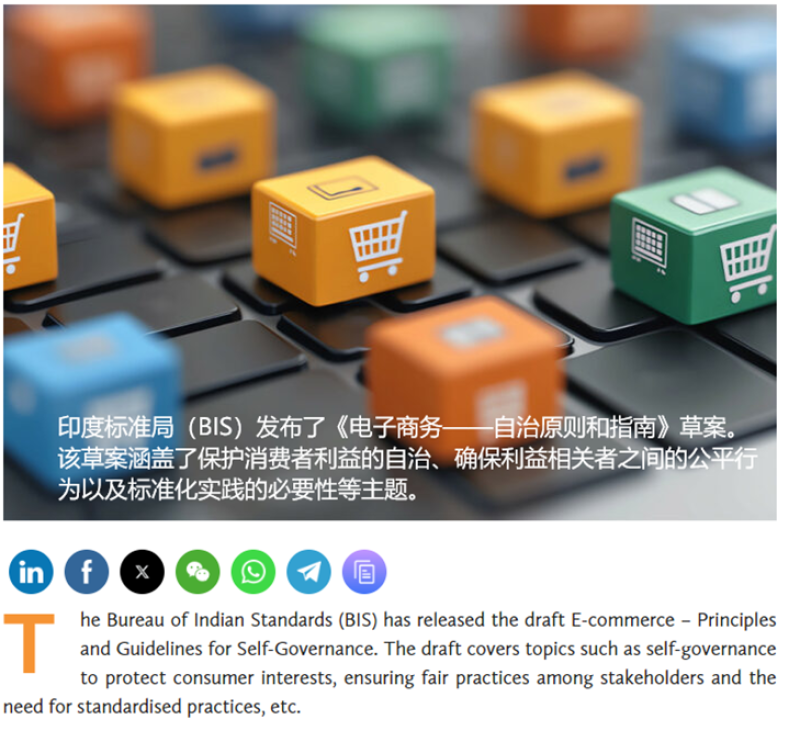 比方說,印度標準局近期就在食品和消費者事務部的監督下編制了《電商自律管理原則與指南》草案,旨在通過電商平臺的自我監管機制,保護消費者免受欺詐行為的影響。