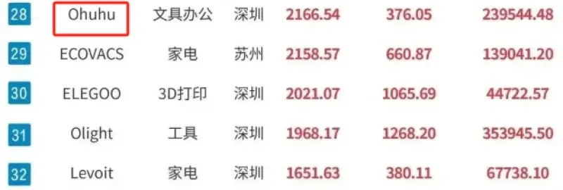 根據(jù)每日經(jīng)濟(jì)新聞X深圳易勢科技聯(lián)合發(fā)布的《中國跨境電商品牌影響力百強(qiáng)榜(2024年第四季度)》,Ohuhu排名第28位,是唯一一個(gè)上榜的文具辦公類品牌,可見其強(qiáng)勁實(shí)力。