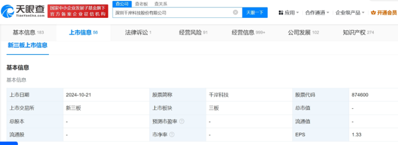 千岸科技上市圖源:天眼查