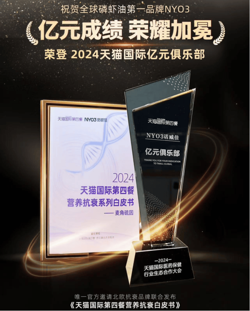 2024年,NYO3以“億粒成就、億元成績”入選天貓國際億元俱樂部。NYO3亞太區CEO鮑俊羽表示,“此次戰略合作是NYO3與平臺的相互奔赴,品牌需要更健康的平臺生態,建設品牌心智,進而放大勢能、獲得增長;而平臺需要更具有差異性的產品,來增強用戶體驗,為平臺注入生態增量。”