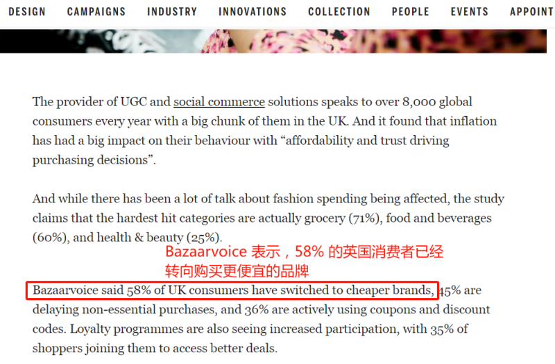 尤其是在經(jīng)濟(jì)形勢(shì)不穩(wěn)定的時(shí)期,低價(jià)商品能夠幫助他們節(jié)省開支,滿足生活需求。尤其是在通貨膨脹的持續(xù)沖擊之下,購(gòu)買性價(jià)比更高的商品成為了人們的新追求。Bazaarvoice此前發(fā)布的報(bào)告就指出,全球8000多名消費(fèi)者因通脹影響而改變購(gòu)買習(xí)慣。其中,高達(dá)58%的英國(guó)消費(fèi)者響而轉(zhuǎn)向購(gòu)買低價(jià)品牌,57%的英國(guó)消費(fèi)者已永久轉(zhuǎn)向購(gòu)買自有品牌產(chǎn)品,這是因?yàn)樽杂衅放频漠a(chǎn)品價(jià)格往往較低。