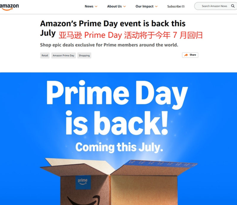 亞馬遜Prime Day會(huì)員日已定檔 圖源:About Amazon
