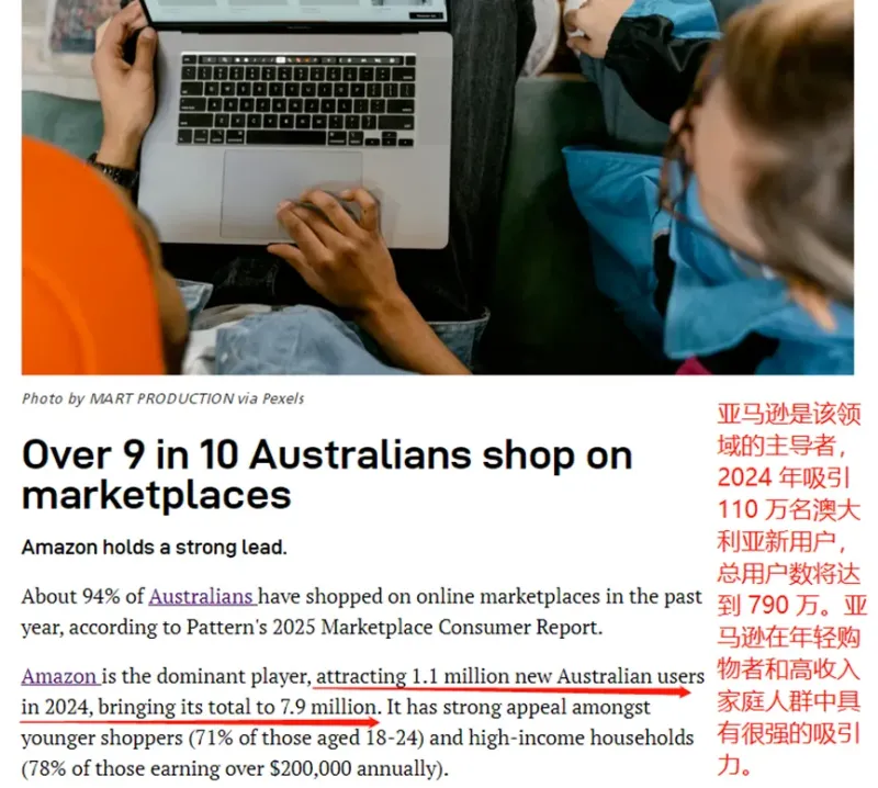 數(shù)據(jù)顯示,2024年亞馬遜澳大利亞業(yè)務(wù)營收達到77億澳元,創(chuàng)下新紀錄。其中電商收入同比增長23%,達到38億澳元。過去一年,亞馬遜在澳大利亞新增110萬用戶,吸引了近6成澳大利亞消費者,總用戶量達到790萬。