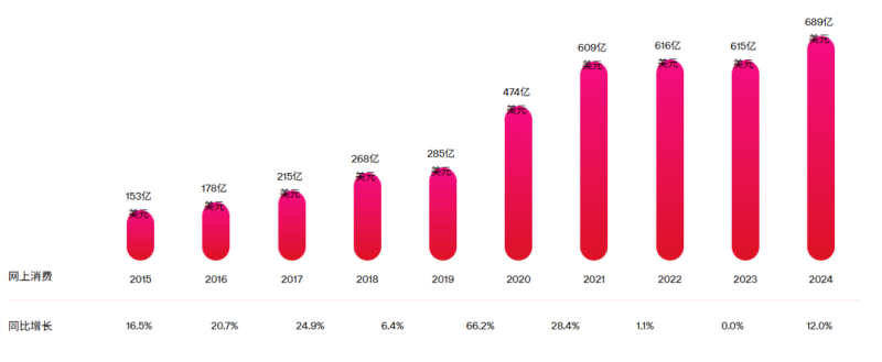 雖然澳大利亞電商規(guī)模不如成熟的歐美市場,但作為全球前10大電商市場,其潛力不可小覷。根據(jù)澳洲郵政2025電子商務(wù)報告,2024年澳大利亞消費者在線消費690億美元,創(chuàng)下新高,同比增長12%。