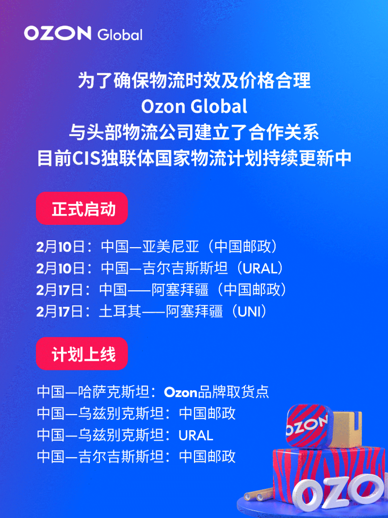 去年下半年,俄羅斯第二大電商巨頭Ozon向中國賣家先后開放哈薩克斯坦和白俄羅斯站點。今年初,Ozon繼續擴大中國賣家的銷售范圍,開放亞美尼亞、吉爾吉斯斯坦和阿塞拜疆站點。同時,Ozon還開通了多條跨境物流新航線,幫助賣家縮短交貨時間。
