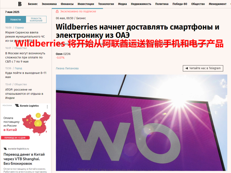 近日,Wildberries代表透露,首批阿聯酋賣家已經完成平臺注冊,Wildberries將于5月開始銷售來自阿聯酋賣家的商品。