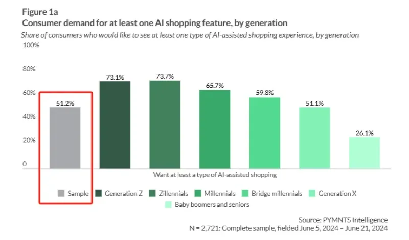 過半數消費者支持AI輔助購物 圖源:PYMNTS