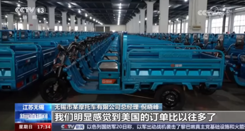 電動三輪車訂單增長?圖源:CCTV新聞
