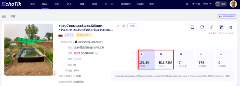 隨著視頻的廣泛傳播,這款遮陽(yáng)網(wǎng)迅速吸引了泰國(guó)消費(fèi)者的目光,評(píng)論區(qū)滿是詢問購(gòu)買渠道和對(duì)產(chǎn)品實(shí)用性贊嘆的留言。驚人的銷售數(shù)據(jù)便是其火爆程度的最好證明。自上架以來,該款遮陽(yáng)網(wǎng)狂銷15萬件,銷售額也相當(dāng)可觀,達(dá)到1373萬泰銖(約合人民幣302萬)。