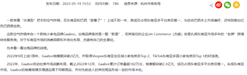 Gaabor出海成績亮眼 圖源:浙江省商務廳