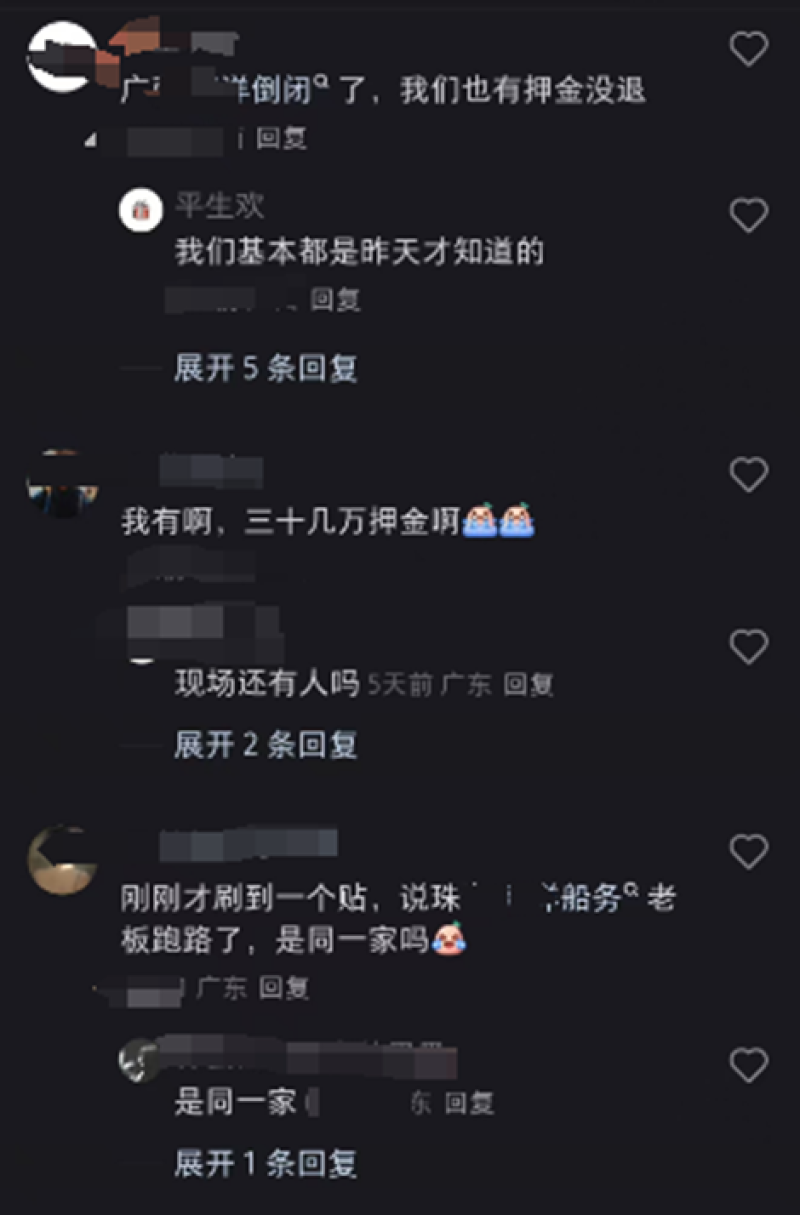 一位廣東賣家就在社交平臺上發帖哭訴自己被該物流公司拖欠押柜押金,帖子一經發布便吸引了大批受害者,大家紛紛留言分享自己的遭遇,被拖欠的金額從幾千到30萬不等,更有賣家爆料稱該公司老板已經跑路。