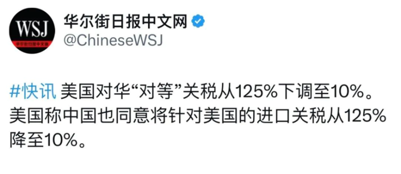 中美大幅降低雙邊關稅水平 圖源:華爾街日報中文網