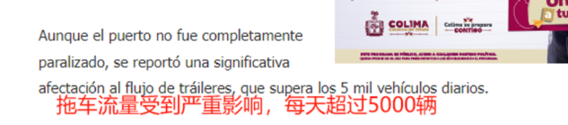 員工想要利用罷工爭取合法權益的行為無可厚非,不過曼薩尼約港作為墨西哥太平洋沿岸最繁忙也是最重要的港口之一,其交通堵塞所造成的連鎖反應是很大的。