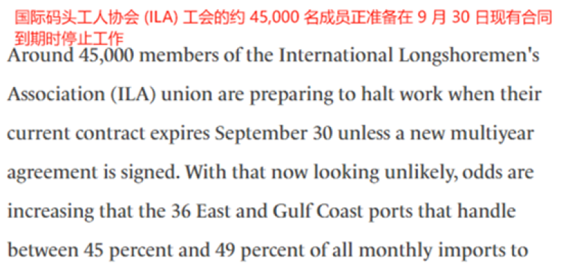 去年年底旺季前期,美國東海岸和墨西哥灣港口就面臨嚴峻的罷工威脅,由于和代表港口管理部門的美國海事聯盟(USMX)在員工勞資問題上存在很大分歧,國際碼頭工人協會工會(ILA)決定在旺季前夕組織45000名港口員工進行大罷工,涉及紐約、休斯頓、佐治亞州薩凡納等36個重點港口。