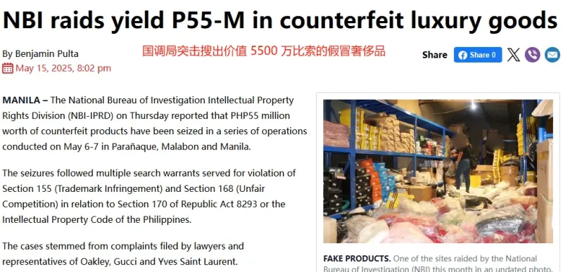 在打擊假冒奢侈品方面,菲律賓國調局可以說非常有經(jīng)驗。