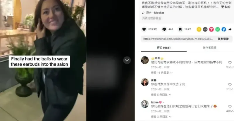 老外愛(ài)上國(guó)產(chǎn)翻譯耳機(jī)圖源:TikTok