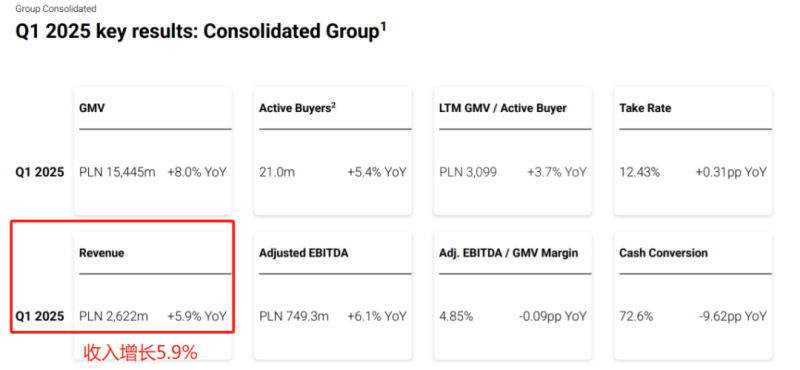 日前,波蘭電商巨頭Allegro公布了2025年第一季度的財報,數據顯示Allegro在該季度取得了十分亮眼的市場表現,盈利能力持續提升。具體來看,Allegro第一季度營收同比增長5.9%,為26.2億波蘭茲羅提(約合人民幣50.4億);營業利潤為4.8億波蘭茲羅提,同比增長10.5%(約合人民幣9.2億);凈利潤為2.9億波蘭茲羅提(約合人民幣5.6億),同比增長3.6%。